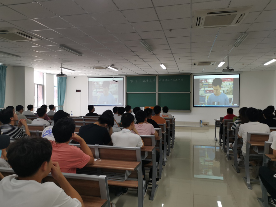 7月10日下午,工学院组织2018级入党积极分子集体观看了2020年7月9日《新闻联播》中关于回信的重要报道,学习习近平总书记的回信精神。工学院2018级辅导员李世颖、孙江飞主持本次会议,106名入党积极分子参加了此次学习。