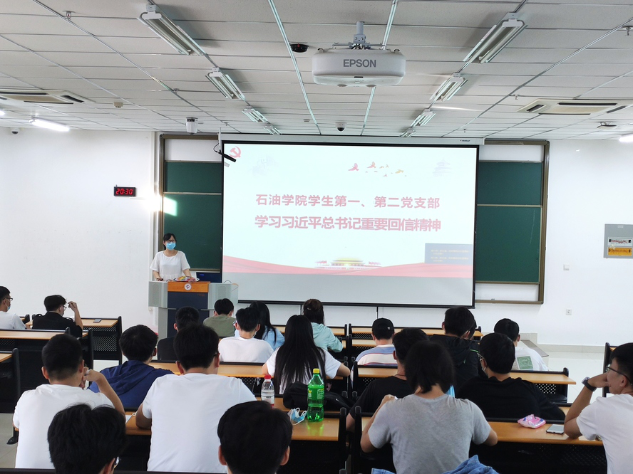7月11日,石油学院学生第一、第二党支部围绕重要回信精神,以线上线下相结合的形式开展了专题学习活动。石油学院2020届新疆基层就业毕业生代表李帅航、袁辉明、魏潇抒和全体学生党员参加了此次活动,活动由辅导员韩仕清主持。